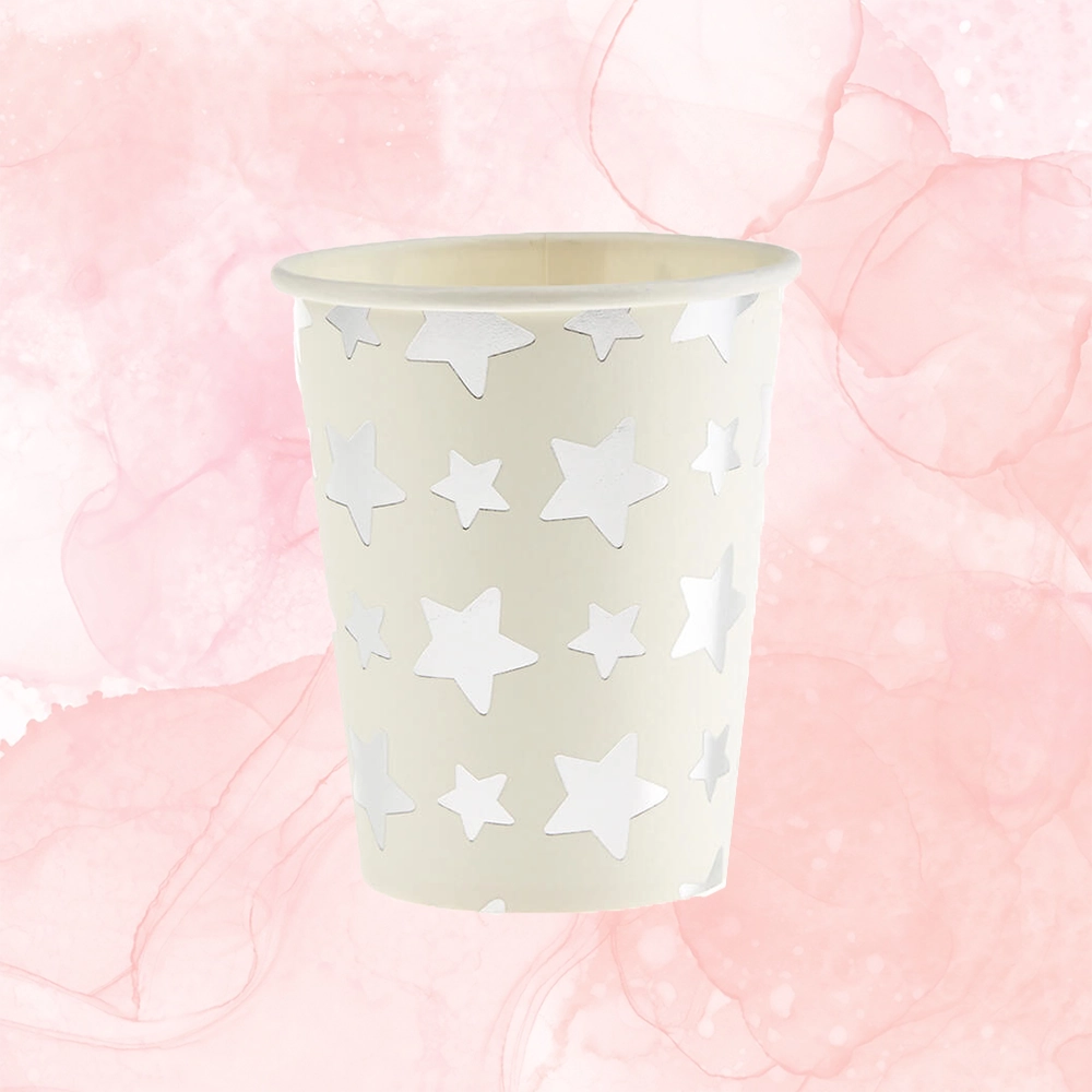 Χάρτινα ποτήρια αστεράκια ασημί 10τμχ